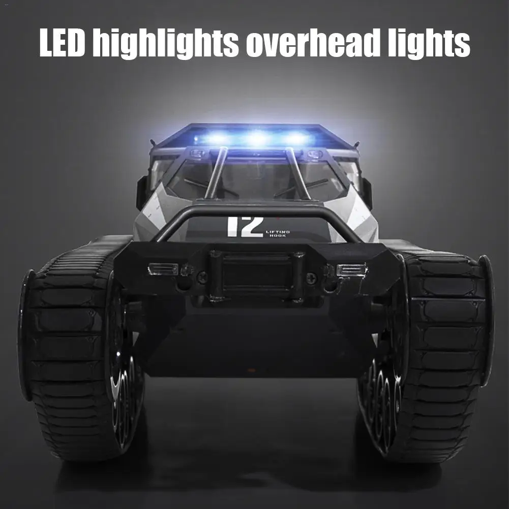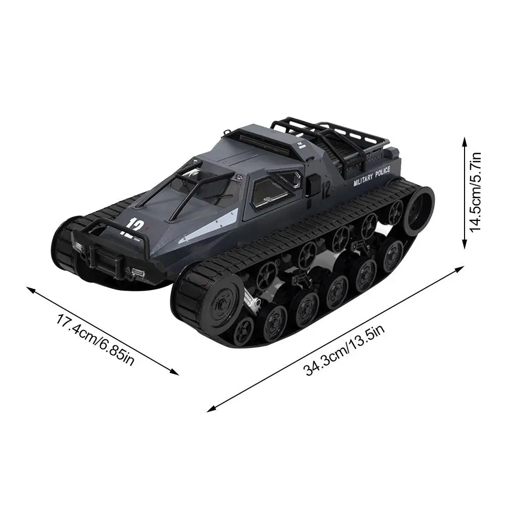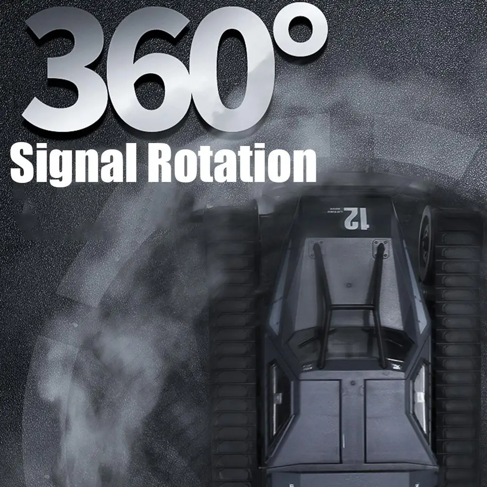 5、360°Signal Rotation: Dual flow drive gearbox; 30° climbing angle; LED high ceiling light; 7 gull wing type door; front wheel automatic adjustment of track tightness; simulation of tank suspension system; about 10cm/3.94in span distance.