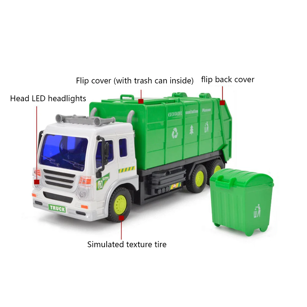 3、Illuminated garbage truck sanitation - When the forward button of the remote control is pressed, the headlights illuminate as they move.