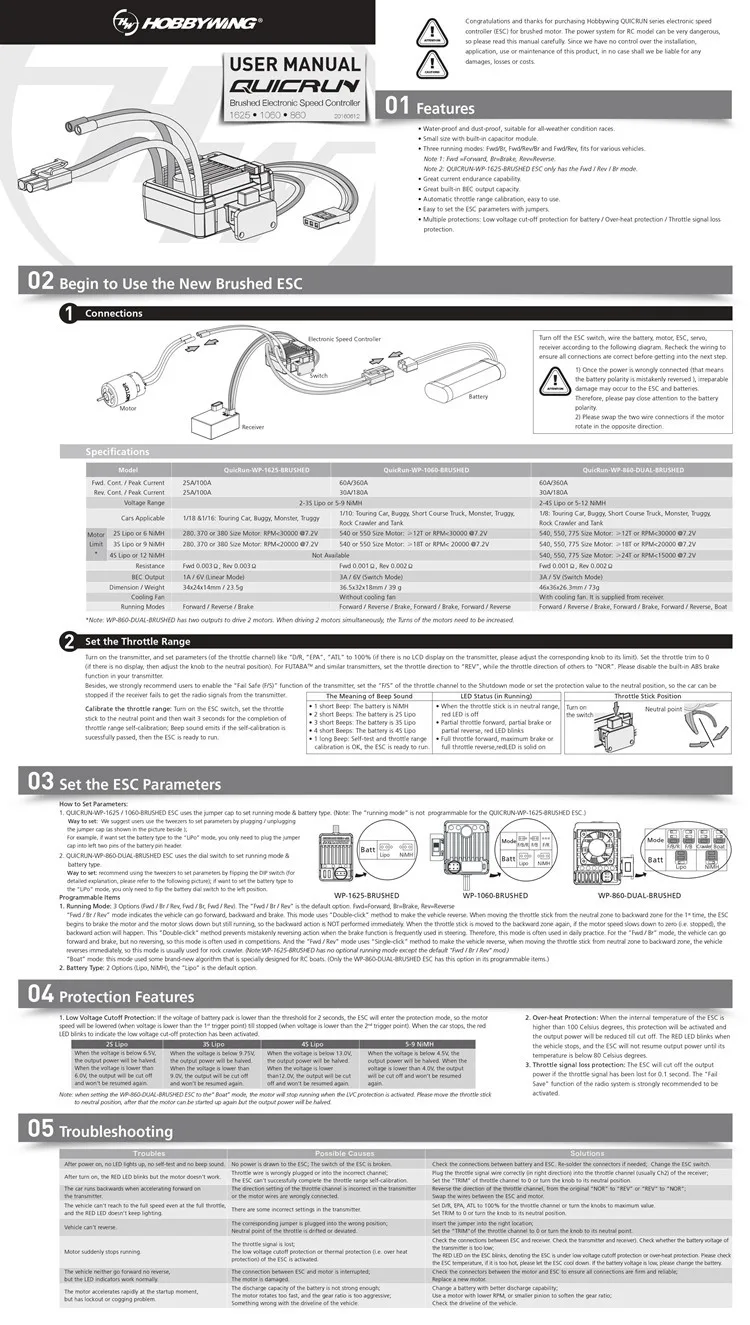 Multiple protections: Low voltage cut-off protection for battery / Over-heat protection / Throttle signal loss protection.