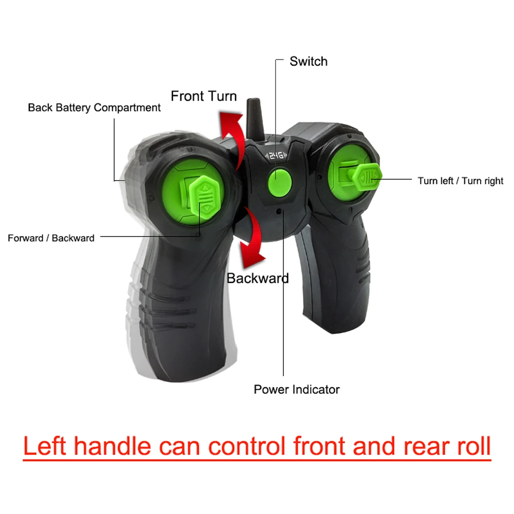- 360 degree rotation dance,180 degree stunt flip,3D deformation double sided running,Forward, Backward,Turn Left, Turn Right.