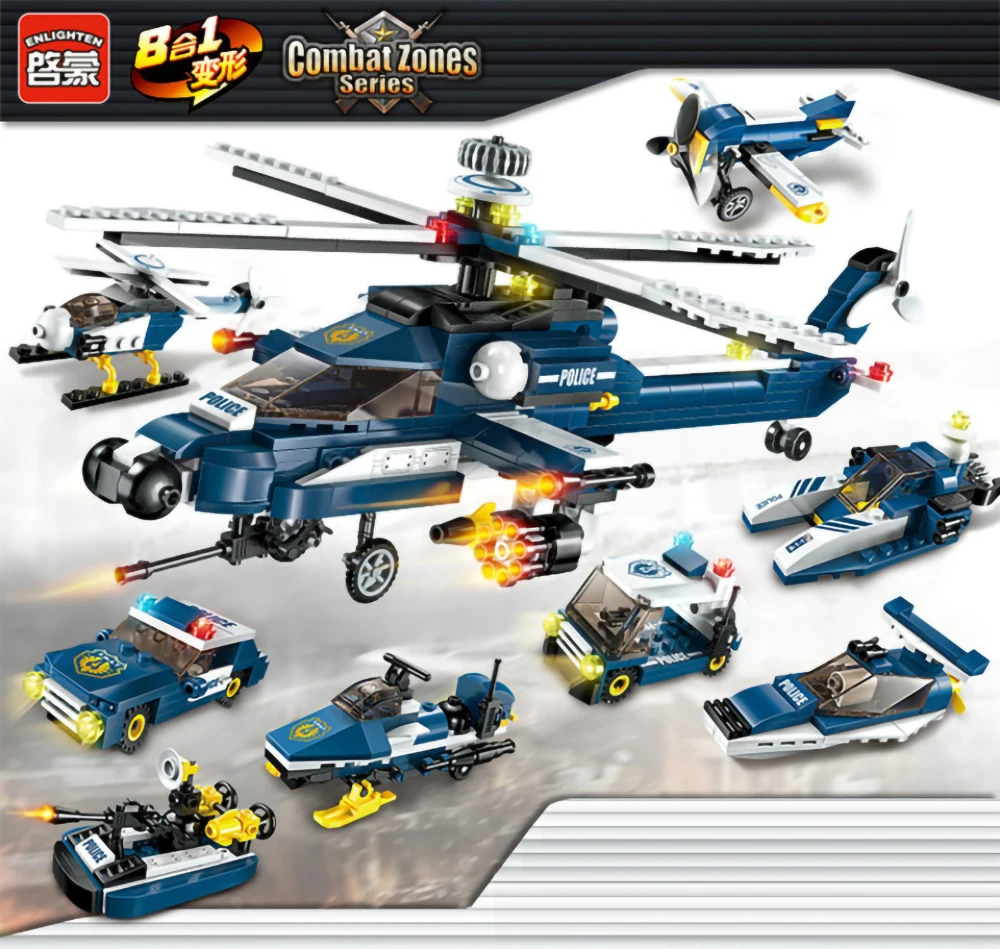 381 Pcs 8-in-1 Assembly Military Helicopter Bombing Plane Building Block Army Weapon Soldier Model Bricks Kit Toys For Children
