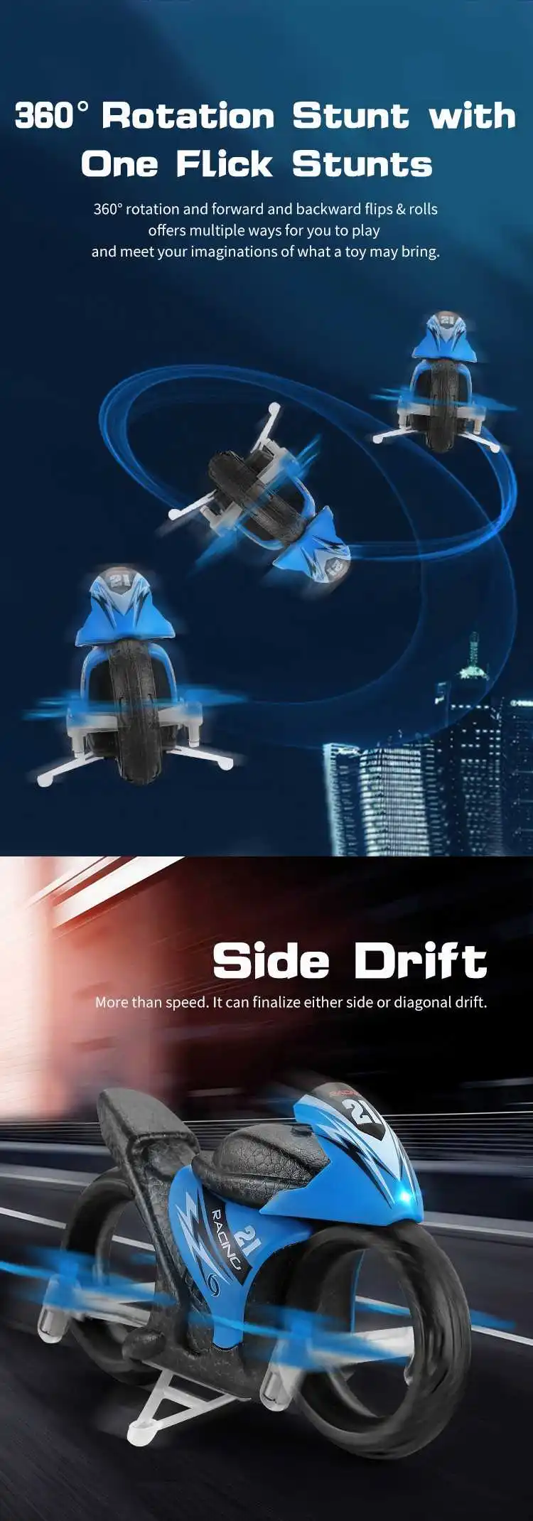 - 360°Rotation Stunt. Forward and backward flips & rolls offers multiple ways for you to play and meet your imaginations of what a toy may bring.