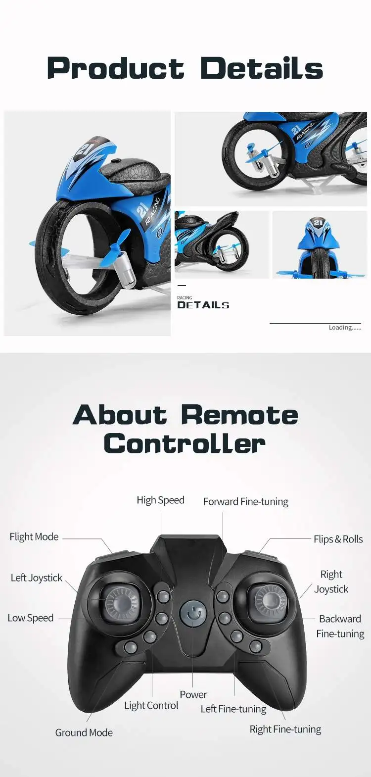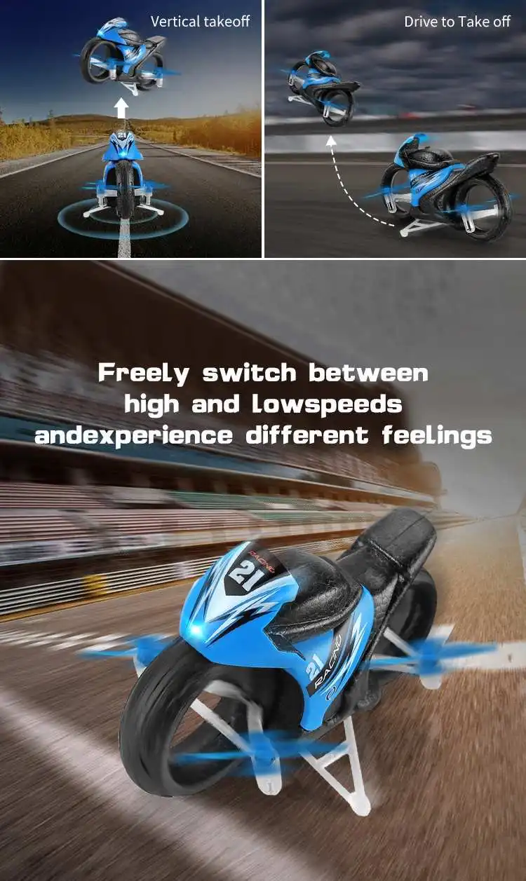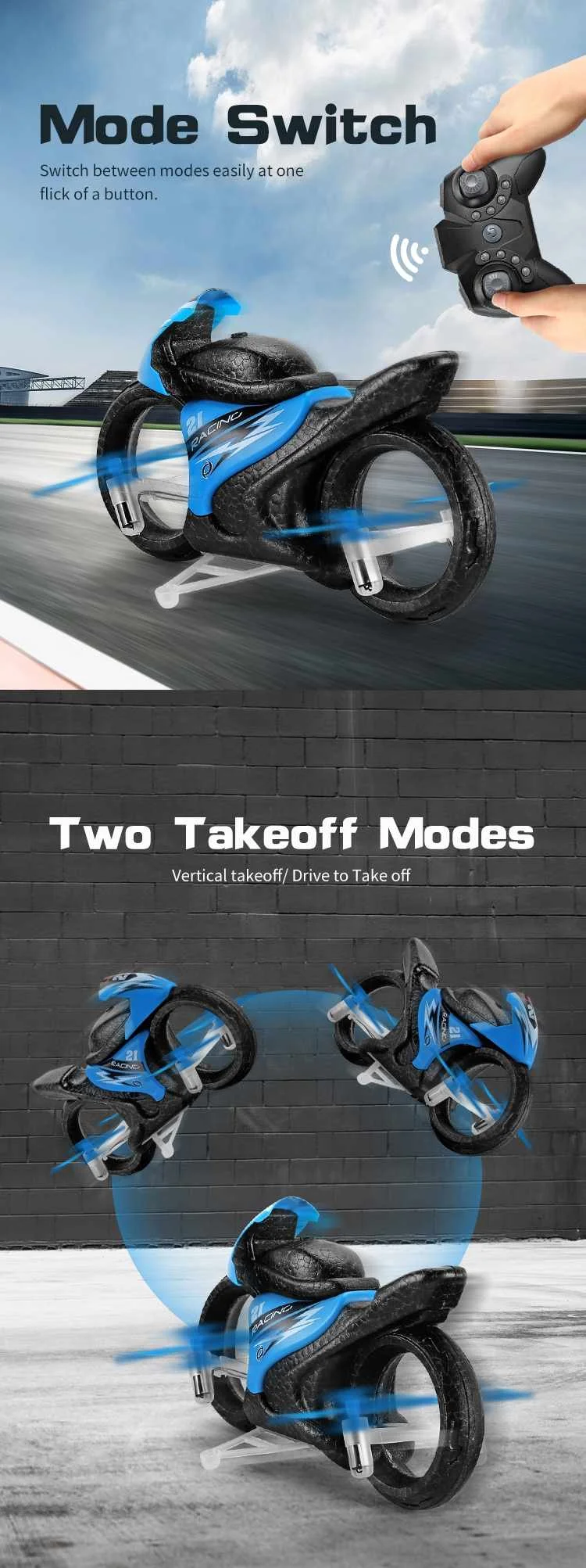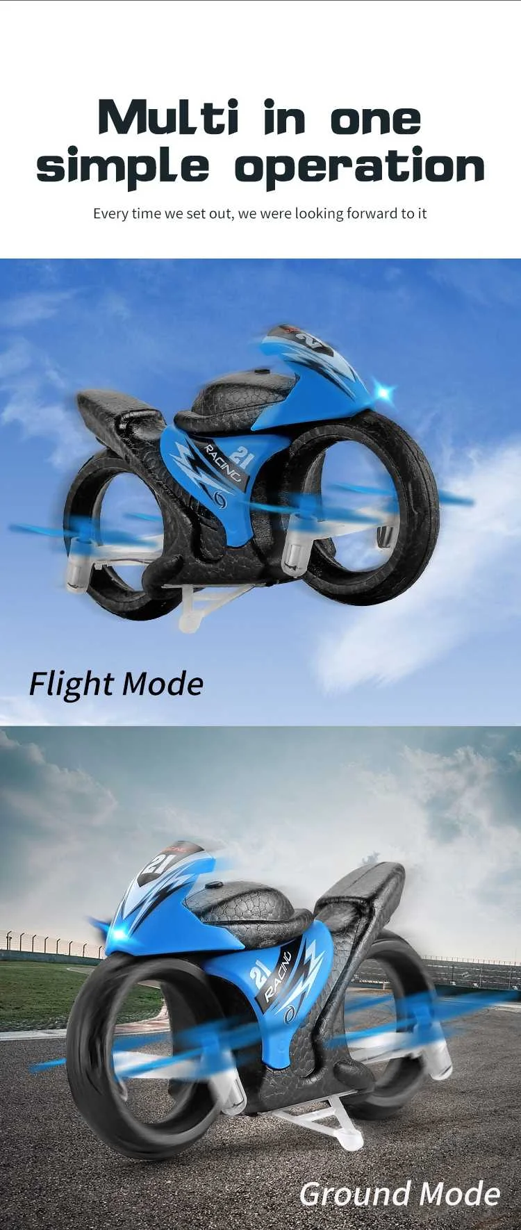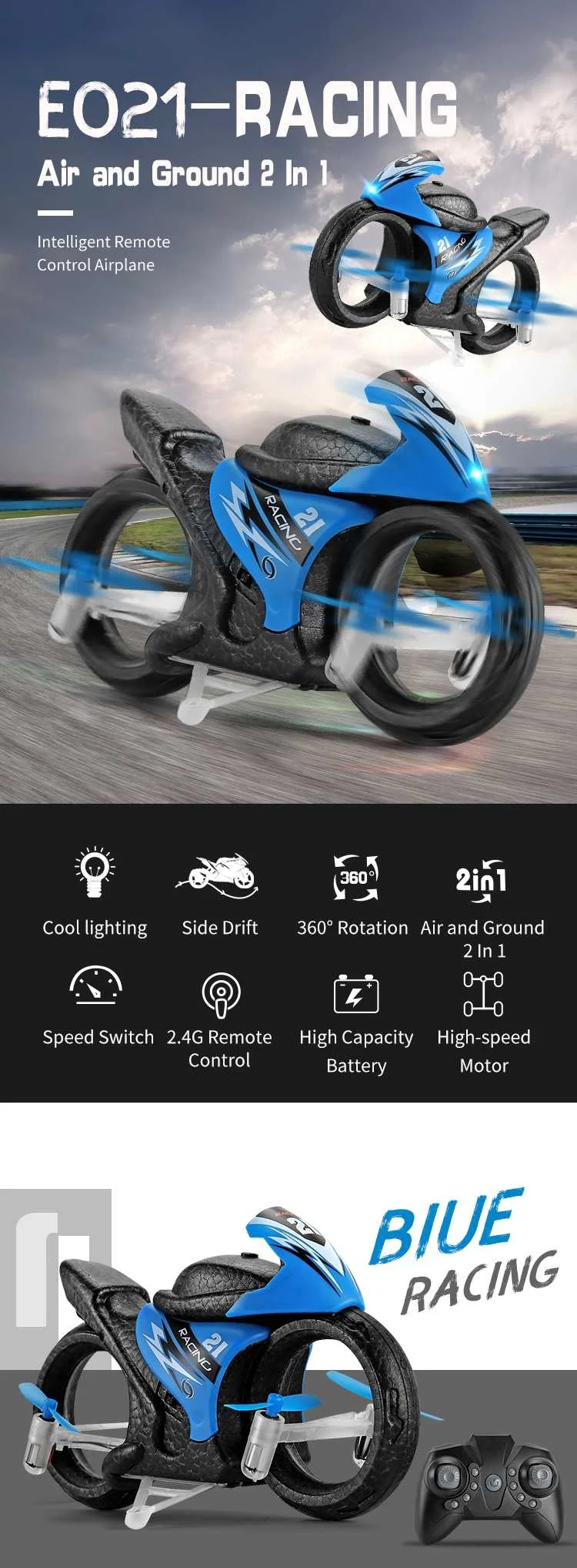 Eachine E021 Racing 2-In-1 Land/Air Mode One Key Switch Flying Motorcycle 2.4G RC Drone Quadcopter
