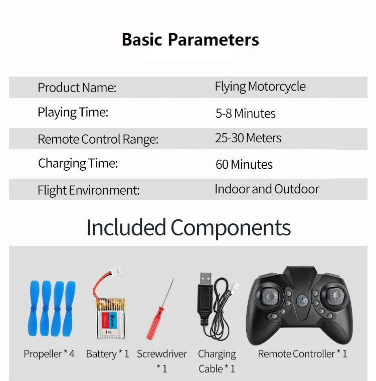 - 6-axis gyro which can have more stable flying and be easy to control.