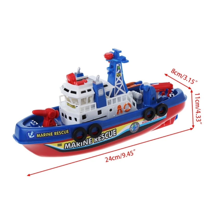 The boat can flash red and blue lights and send out police siren, just like a tiny real fire boat