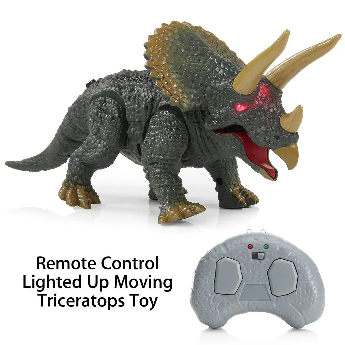 This realistic infrared walking dinosaur with sound is the perfect toy for any aspiring paleontologist. Each remote control dinosaur toy has glowing red eyes and opens its mouth when it for roars. You can control whether the dinosaur takes one step forward and for roars or if he continuously walks forward. The dinosaur charges using the remote control as a power source.