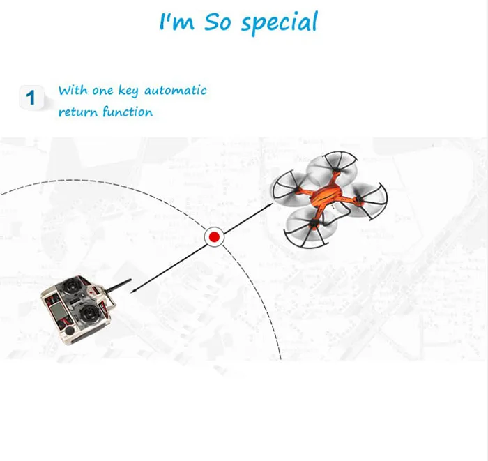 With one key automatic return function (The return position may not be very accurate. A variance of a few meters from the take off position exists)