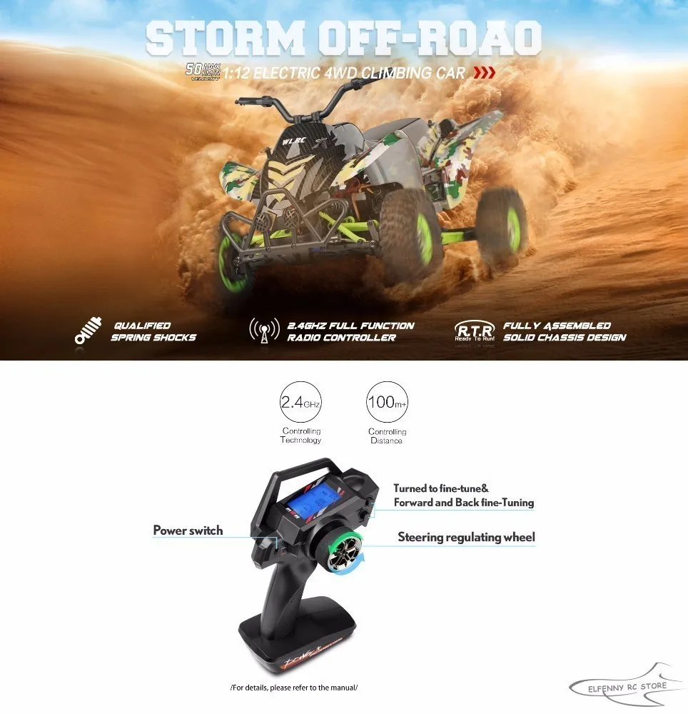 Original Wltoys 12428-A 1/12 2.4G 4WD 50km/h Electric Brushed Off-road Motorcycle LED Lights RTR RC Car Remote Control Vehicle