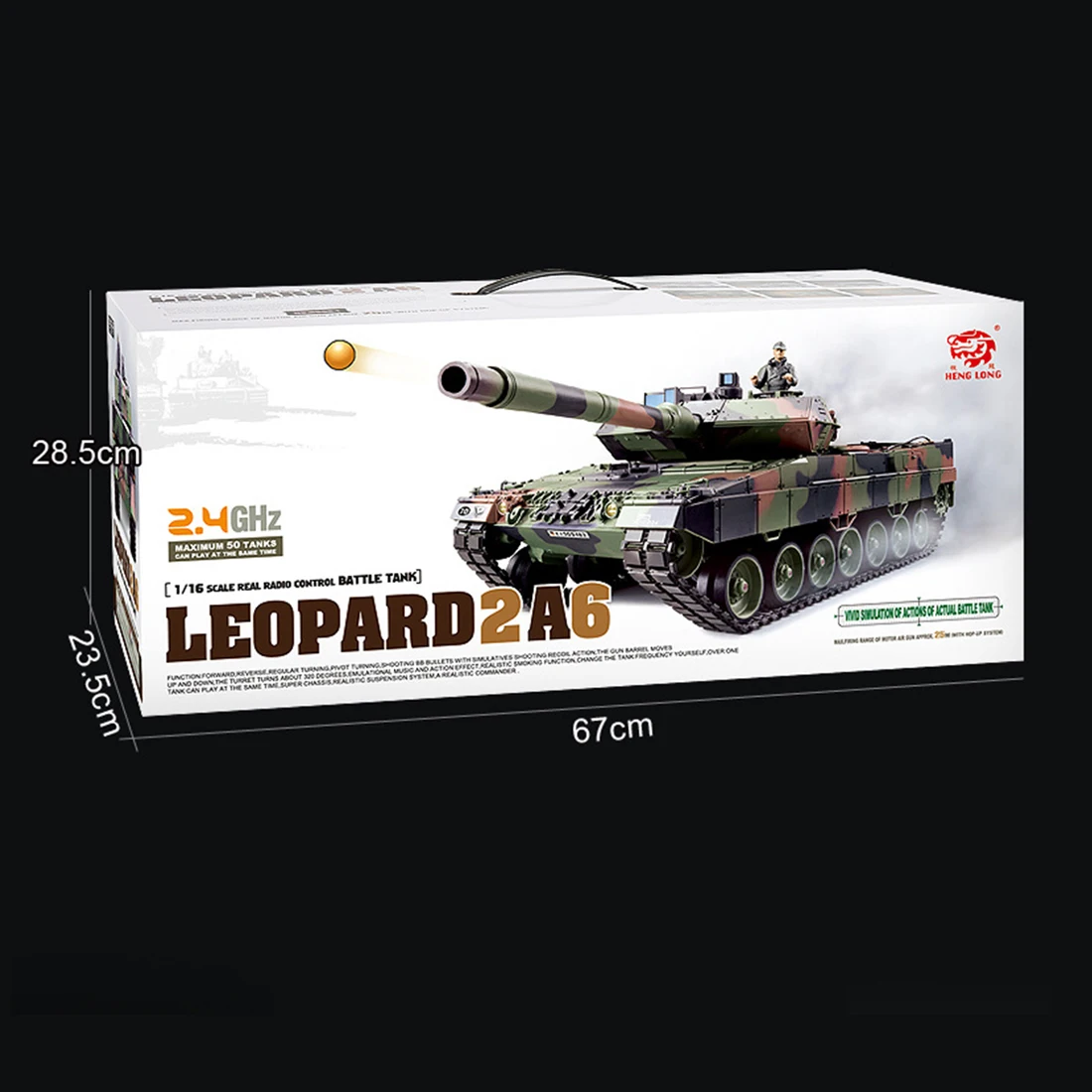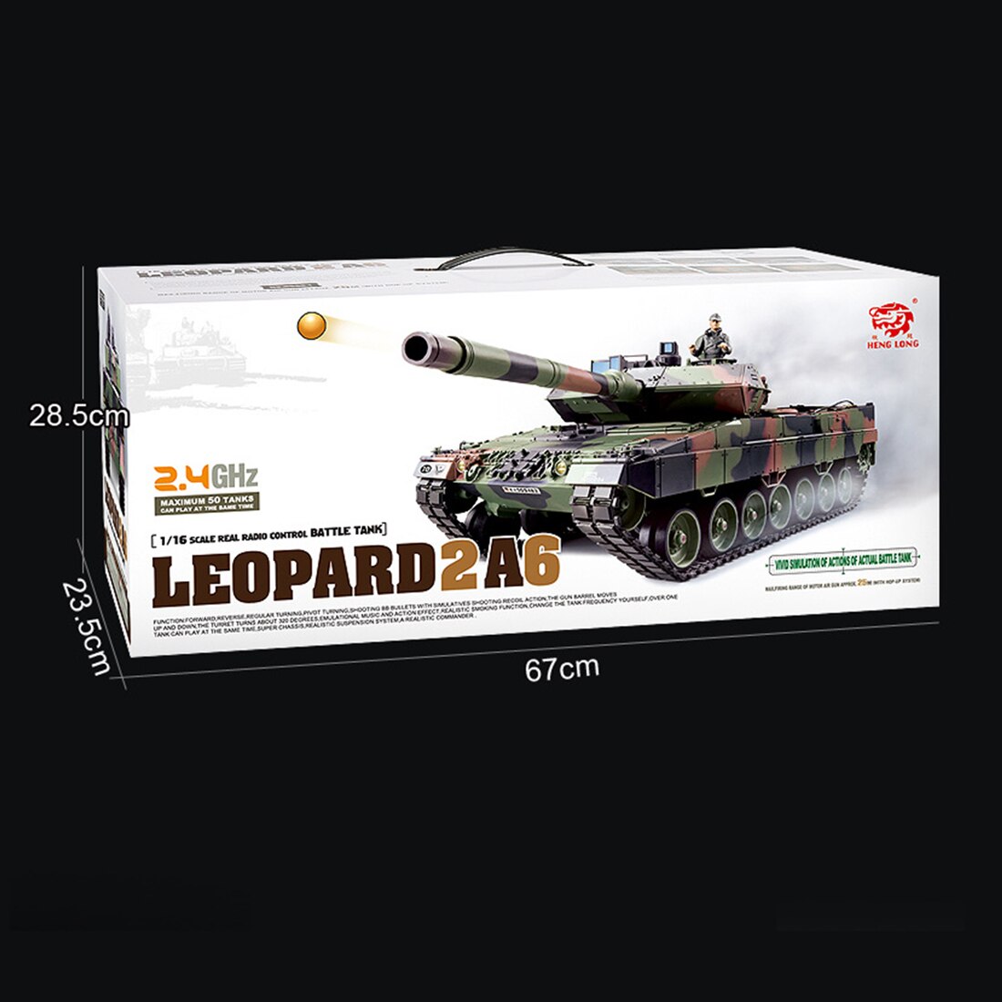 .Main Functions: full-scale remote control function, infinitely variable speed forward and backward, super trust rotation; can launch safe PP eggs, with simulation sound effects, action effects, smoke effects; recoil demonstration, turret can be rotated 320 °, gun barrel can be 30 ° Up and down; independent suspension, realistic commander, infrared battle