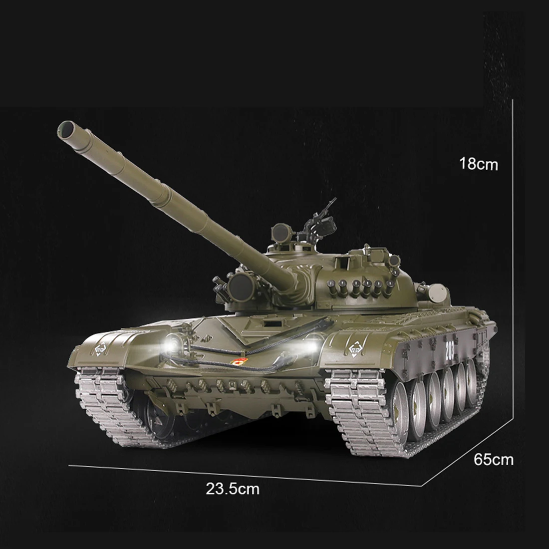.Main Functions: Full proportional remote control function, continuously variable transmission forward and backward, spin turn. When PP darts launched, it comes with simulation sound effect, action effect and smoke effect. Recoil demonstration. Turret can be 320° rotation. Barrel can be 30° up and down. Independent suspension, infrared combat.