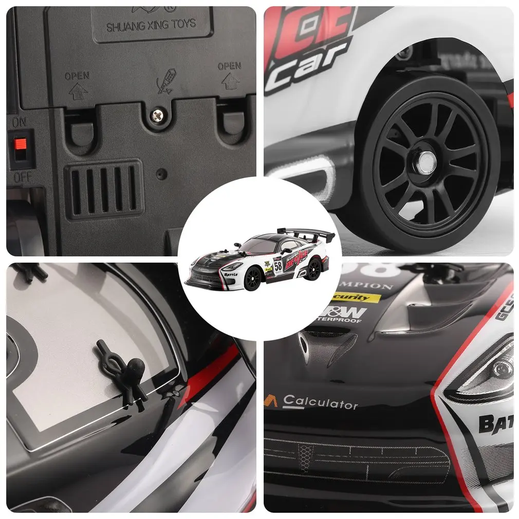 This drift car is electric powered and perfect for indoor or outdoor drifting.