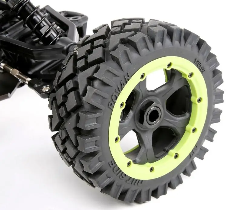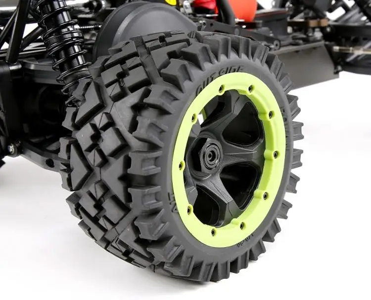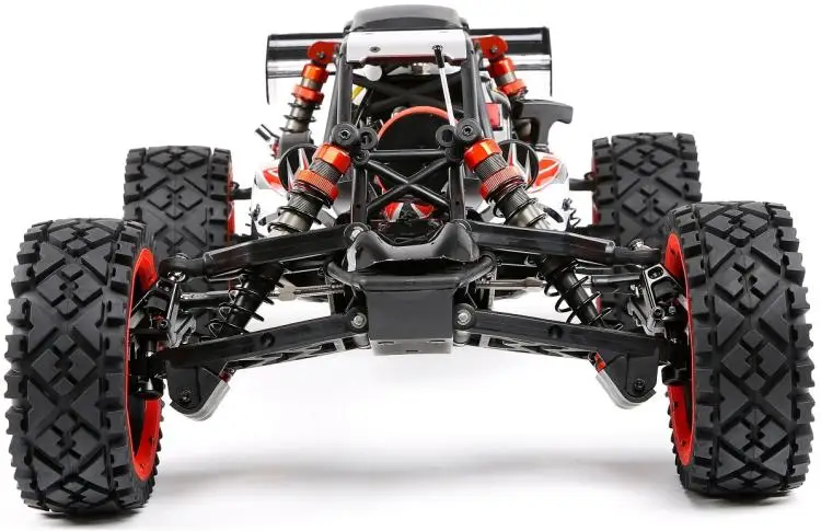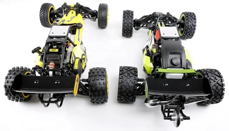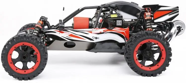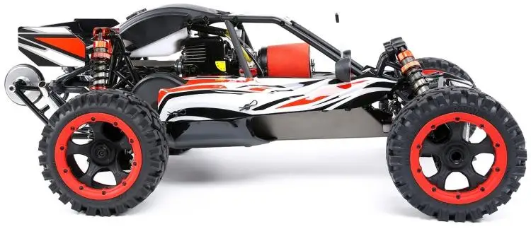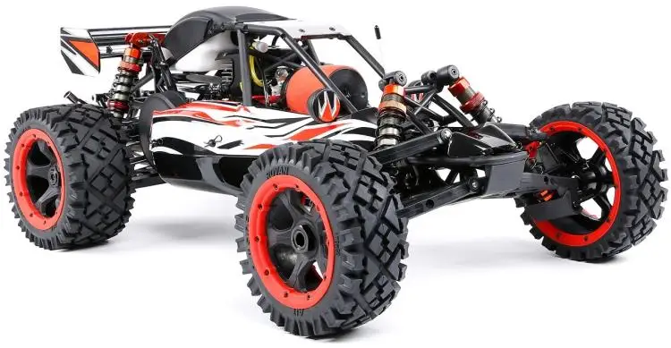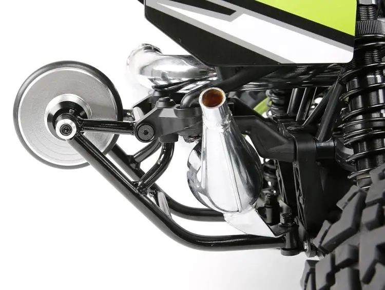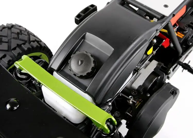 Scale 1/5 1.Length x width x height LxWxH: 795x480x300mm 2.Rovan 29CC cylinder head fixed at four points 2T air-cooled gasoline engine Bore size * stroke: 36x28 / mm Displacement: 28.5 / cm3 Carburetor: ROFUN 997 Spark plug: domestic CMR7H Start way: pull back Intake method: scavenging Cooling method: forced air cooling Lubrication: 2T + gasoline Idle speed: 4500 ± 200 / rpm Maximum speed without load: 19500 / rpm Maximum power: 2.0 / 13000kW / rpm Maximum torque: 1.69 / 9000Nm / rpm Clutch contact point speed: 8000 / rpm 3.Front track 395mm / rear 400mm 4.Wheelbase: 475mm 5.Rear wheel drive 6. Rear axle braking 7, 6mm shock absorption 8.Metal differential 9, the second generation of enhanced front and rear suspension 10, 9MM replaceable pin shaft 11. All-wheel tires (four-generation wheels) 12.Dominator exhaust pipe 13, 8000 rpm clutch 14.Symmetric steering system 16.2.4G non-LCD remote control 17, 18KG full metal gear throttle servo 18, 45G metal gear steering gear 19.CNC metal rear shock absorber 20. CNC metal car shell front bracket 21.Tail wheel kit 22. On-board maintenance kit