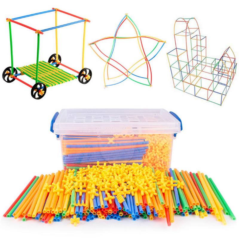 100Pcs 4D DIY Plastic Toys Straw Inserted Construction Building Blocks Kits Assembly Toys Blocks Bricks Christmas Gift for kids