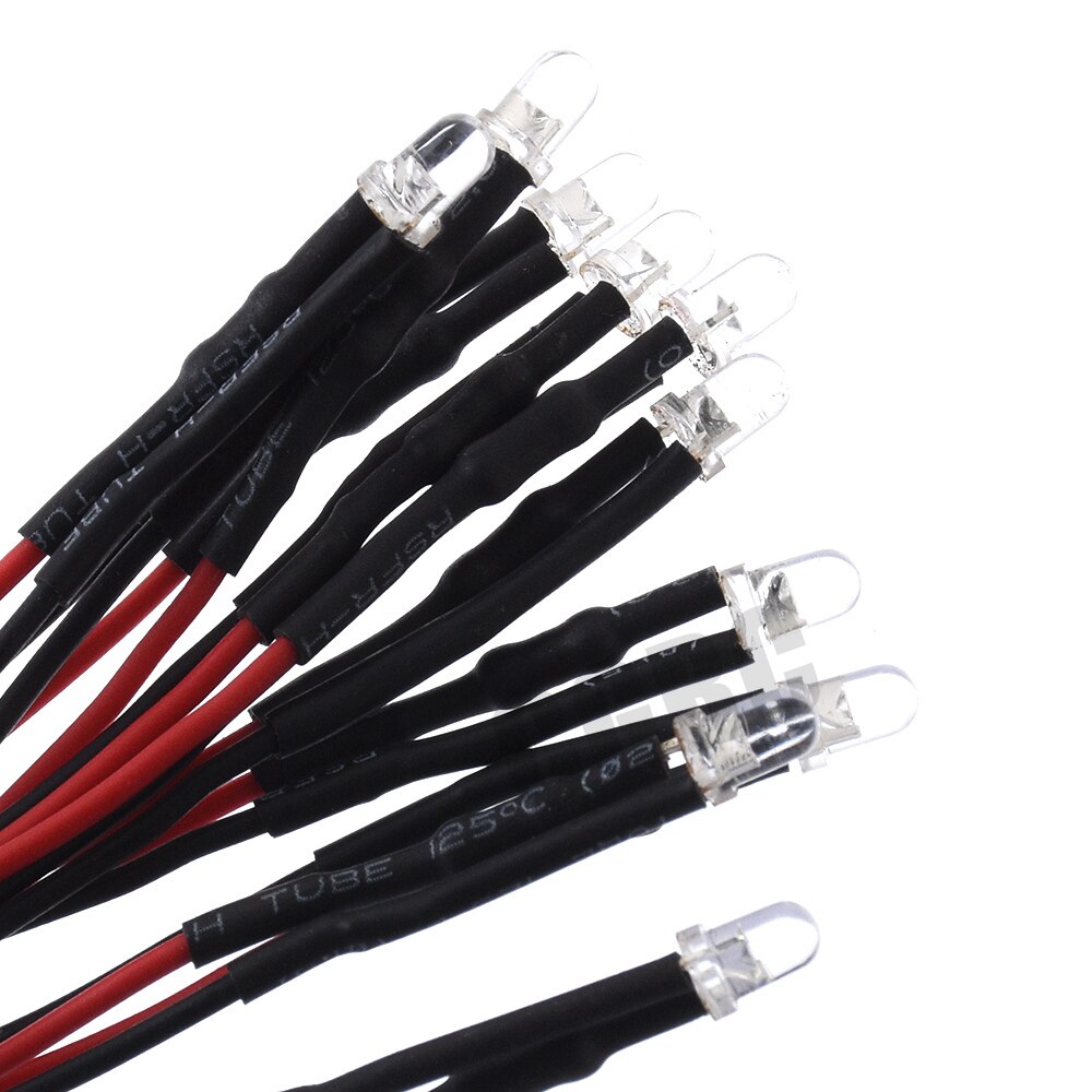 10pcs 3mm 5mm 12V LED Light Red White Yellow For 1/10 RC Crawler 1/14 Tamiya RC Truck Drift car Traxxas SCX10 SCANIA