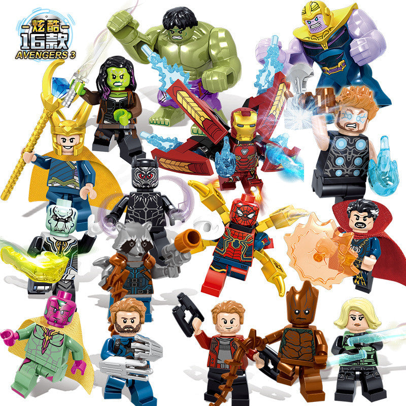 16pcs/set The Avengers Heroes DIY Model Building Blocks Kit Hulk Batman Thanos Thor Assembling Bricks Toys Kids with Legoinglys