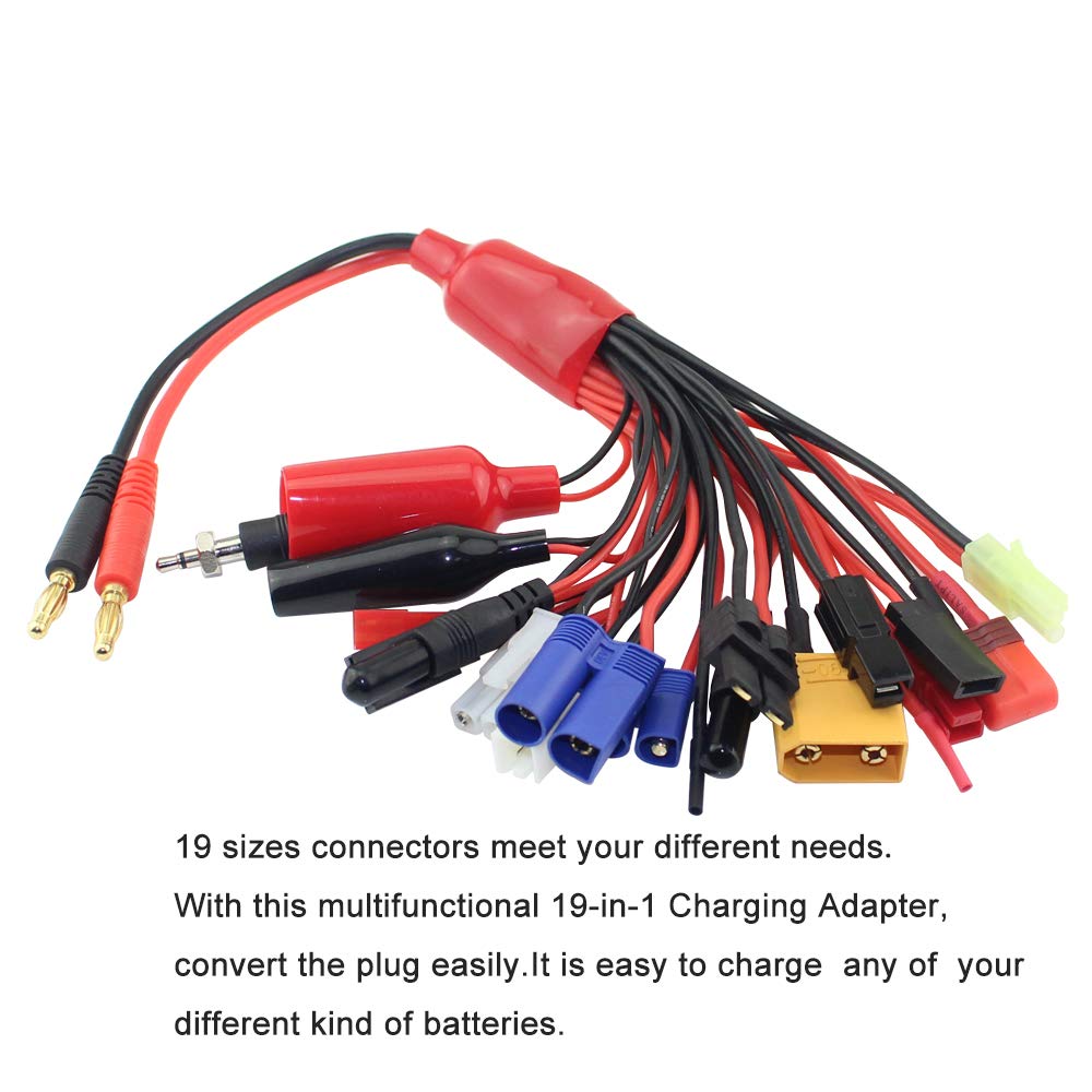 Eliminates multiple charge leads & adapters - 8 in1 Charging Adapter Cable for Use with Your RC Charger and Accessories Use with most RC Chargers that use 4mm Banana Plug/Bullet Connector Inputs High quality - connectors & smooth flexible silicone wire & Gold plated banana plug