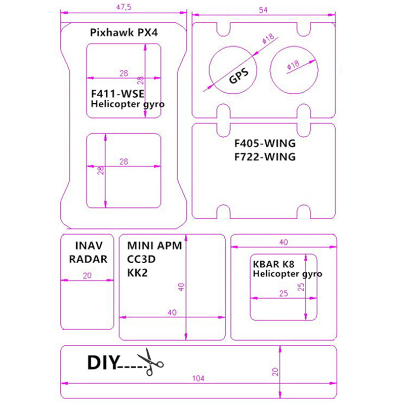The 3M double-side sponge is a anti-vibration pad which designed for pixhawk, APM, F405-WING, F722-WING, SP racing F3, F4 CC3D and other flight controls and gyro-containing receivers. It can also be used for damping of inertial sensor modules. Light weight, the traditional rubber ball damping plate can not achieve the best shock absorption effect, using high-quality electronic memory foam and original 3M adhesive, for this kind of lightweight flight controller can achieve excellent shock absorption effect, for Multi-rotor, the resonance generated by multiple fixed-wing aircraft has good filtering effect.
