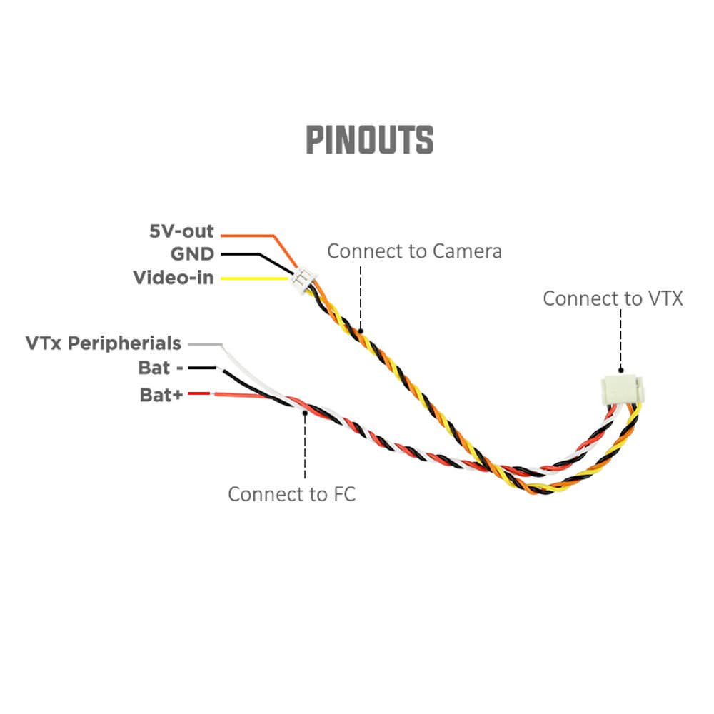 Application: Used to connect FuriousFPV VTXs with camera and FC.
