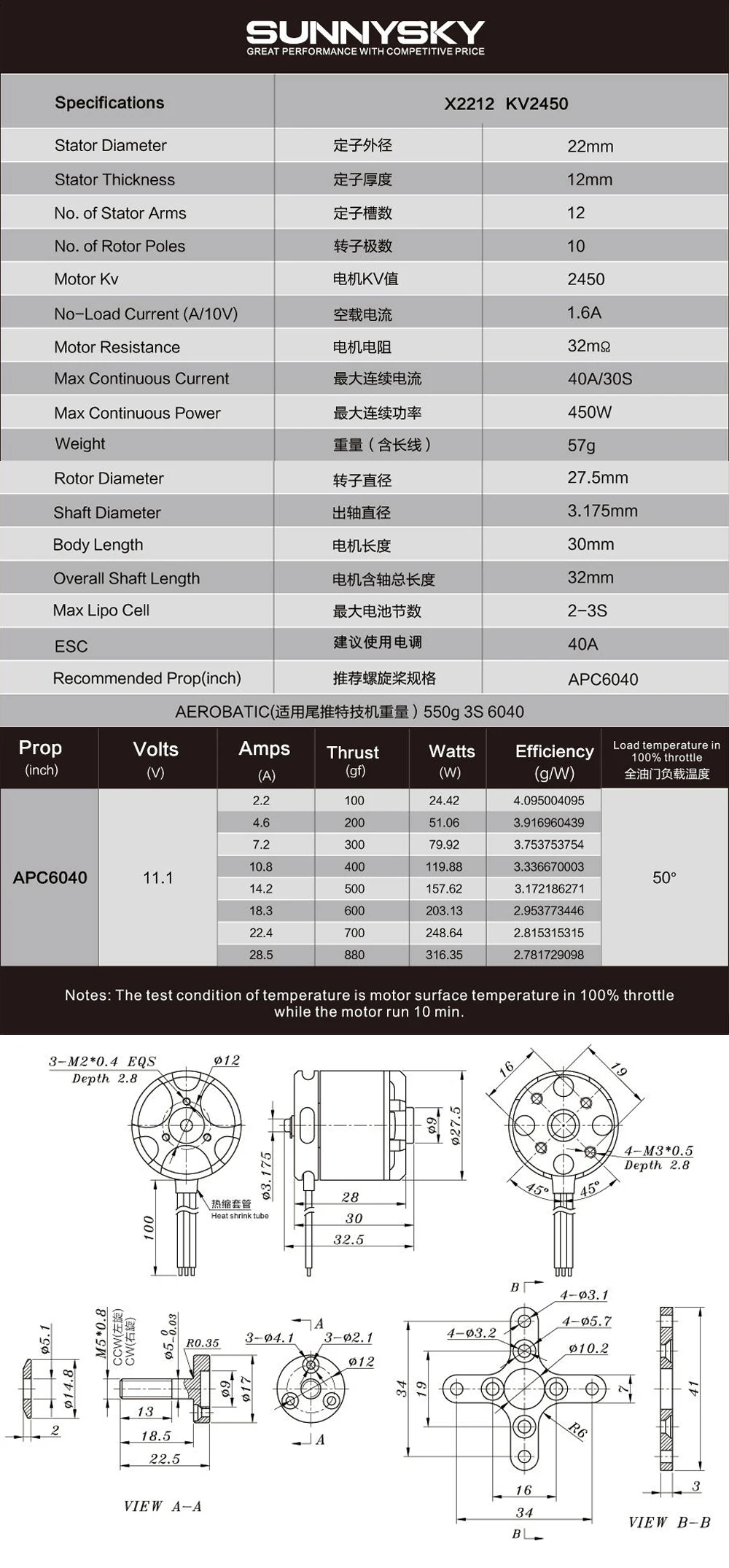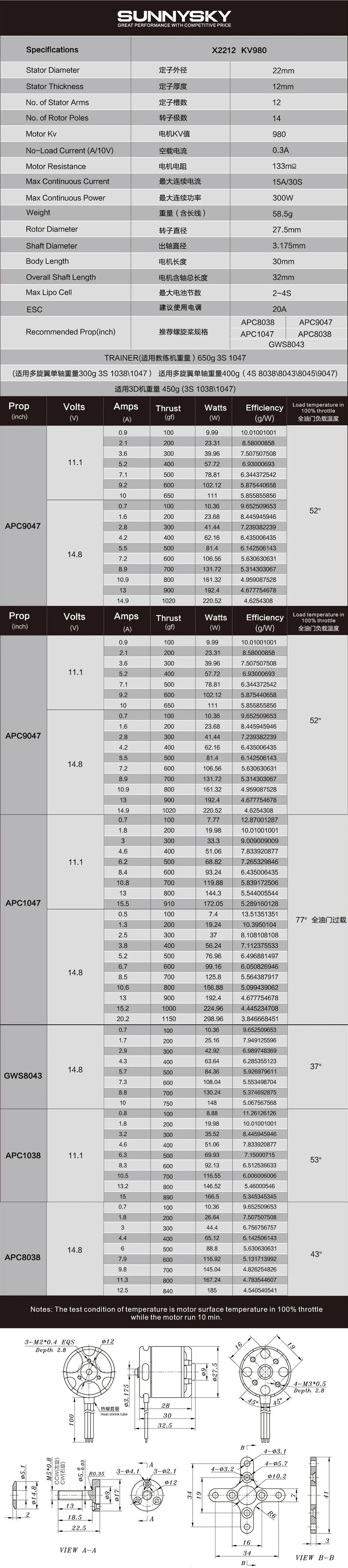 SUNNYSKY X2212 KV980/KV1250/KV1400/KV2450 Brushless Motor