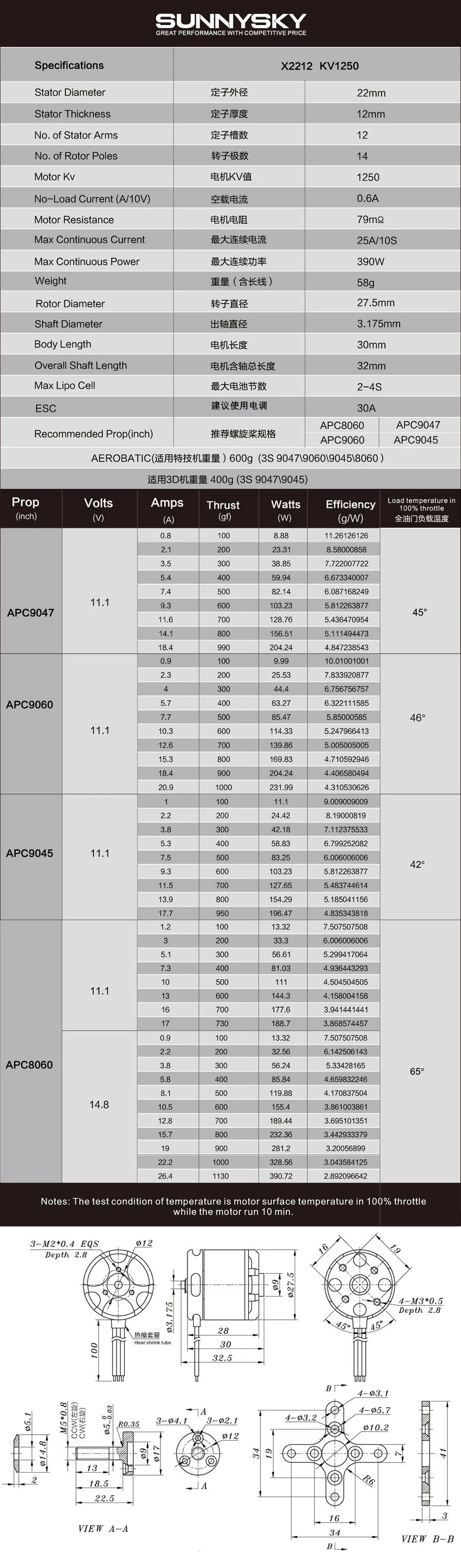 X2212 KV1250 Brushless Motor: