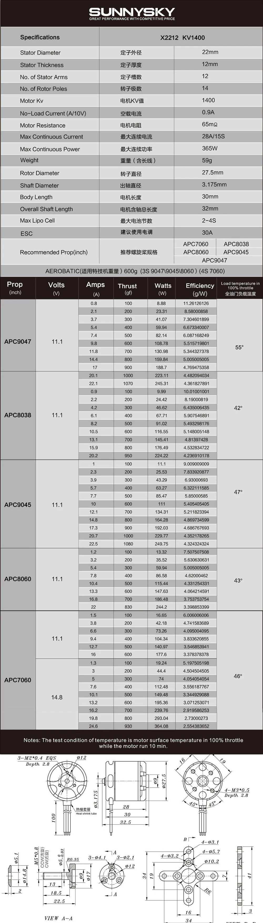 X2212 KV1400 Brushless Motor: