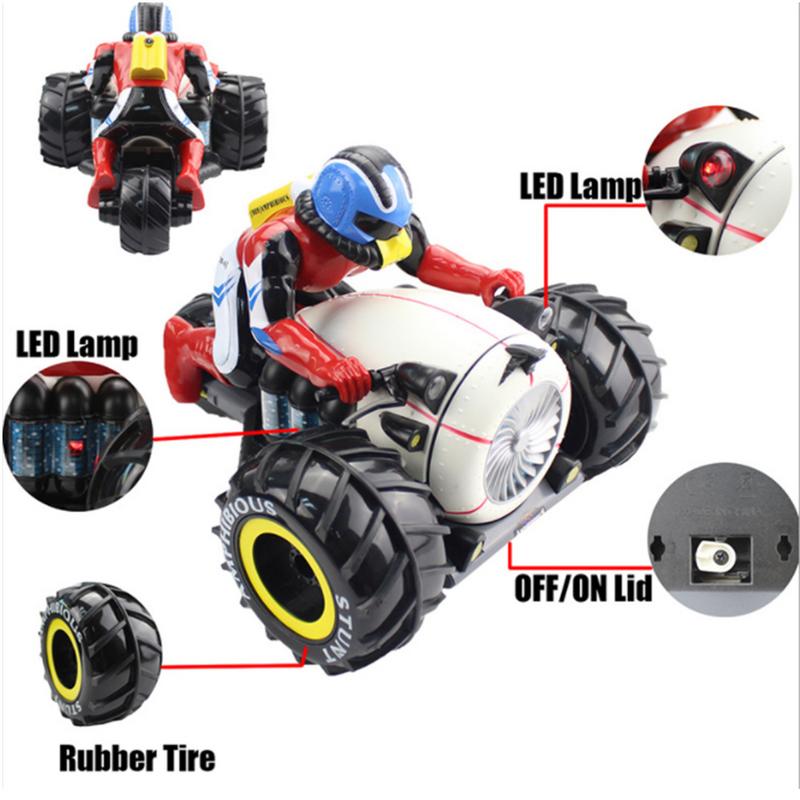 2.4G 4WD Remote Control Amphibious Motorcycle Rotary Tipping High Speed Off-Road Climbing Stunt Car With Light For Child's Toy