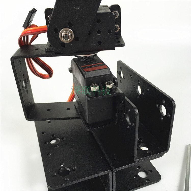 the traditional simple 2 degree of freedom platform, is the use of the output shaft gear as the supporting force, is entirely in the steering gear output shaft, can carry less weight. This 2 degree of freedom platform, at the bottom of the 3 U type beam used as a base, the bottom rudder with a long U type bracket reinforcement, can smooth rotation of the bearing ability! We used two large torque metal gear as the head of the power source, so that the platform can realize horizontal 180 degree rotation and vertical rotation of 180 degrees.