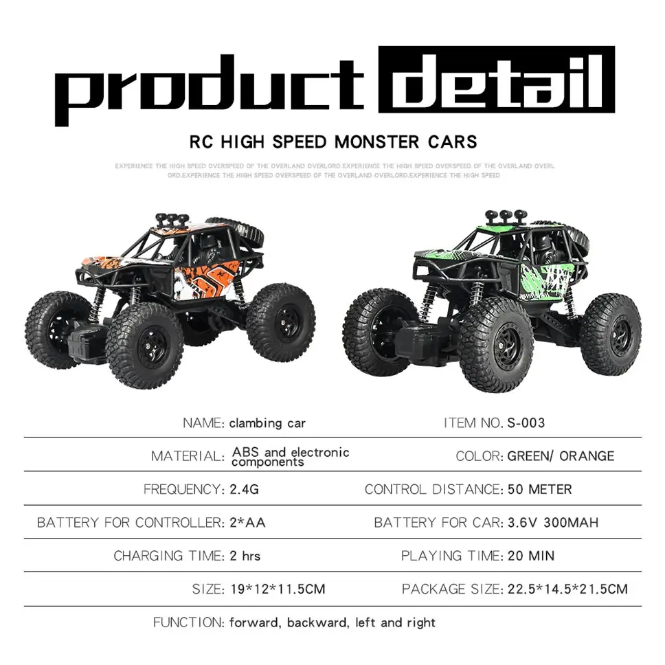 - 2.4GHZ RC Transmitter Supporting, Four-Wheel Independent Suspension system Driving all time.