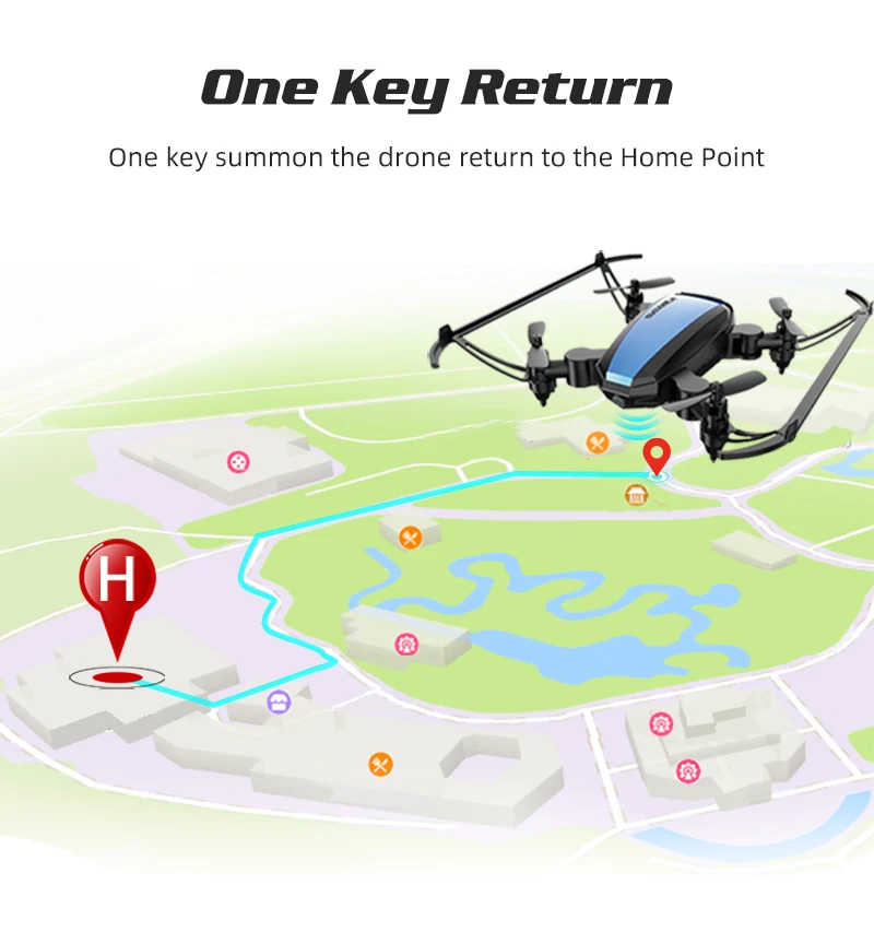 【One Key Return】 With this function, your mini drone will auto fly back in the direction of the transmitter. Also One Key Take Off/Landing function surely makes the drone easy to fly for entry level pilots.