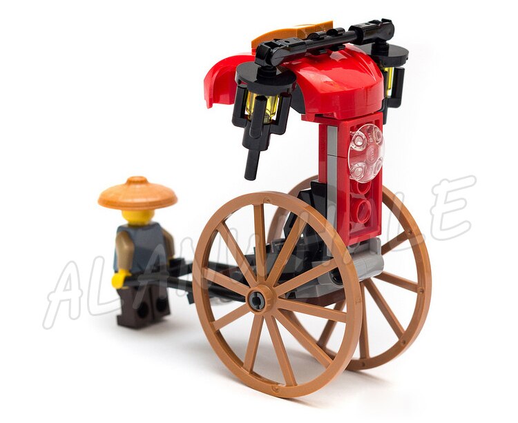 Rickshaw features a figure seat, large wheels and 2 lanterns, weapons include Kai's 2 katanas and Misako's bow and arrow