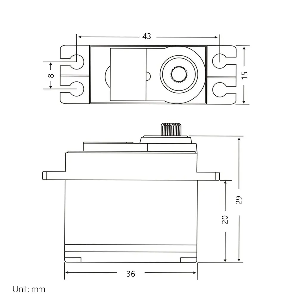 1.Light weight and high torque: small size and 25g light weight, but the torque could be 4.52kg during 6V input voltage.