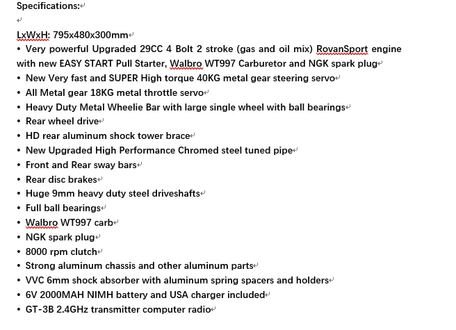 29cc Gas Engine 2WD Buggy Rc Car for 1/5 Scale Rofun ROVAN Racing Q-Baja