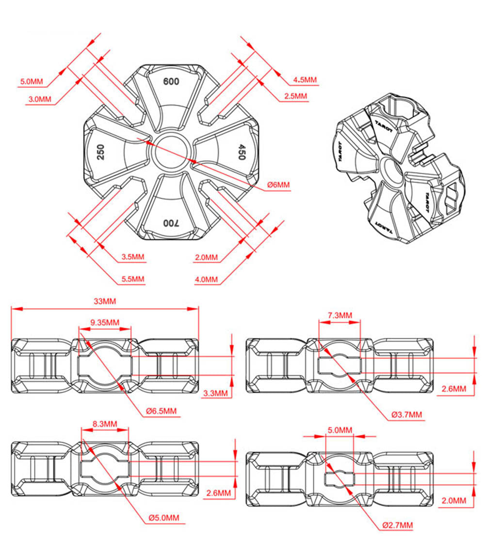 2PCS Tarot RC Helicopter Ball Head Rod Linkage Wrench For 250-700 Class RC Helicooter