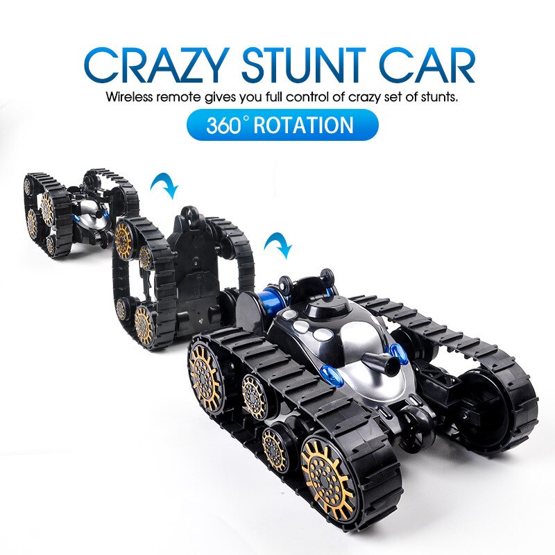 Product Performance: 360° flip, the front and rear chains automatically vibrate, move forward, move backwards, light, music.