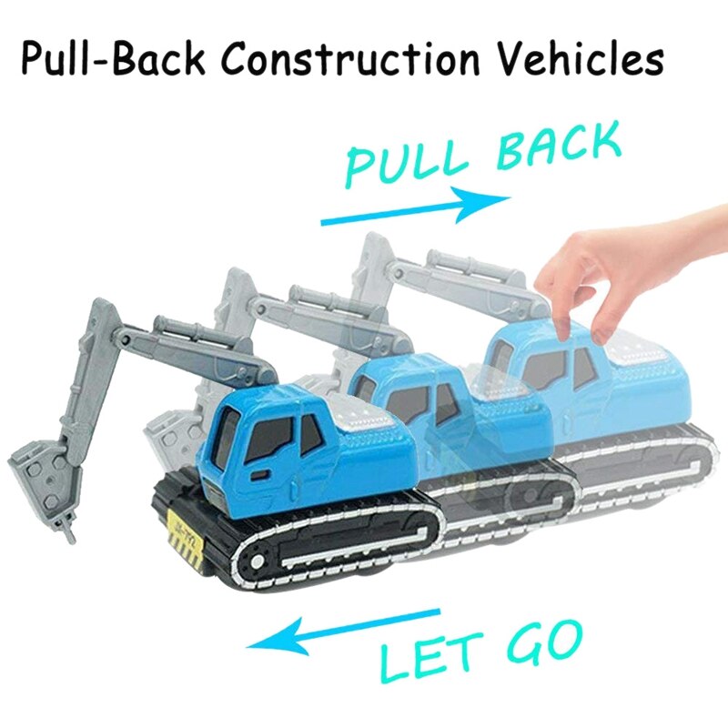 MINI PULL BACK CARS - The "PULL-BACK-AND-RELEASE" function will keep your kid enjoying driving and racing around the vehicles for hours. They can play with these toy cars alone or with friends, holding exciting races or undertaking massive construction projects.
