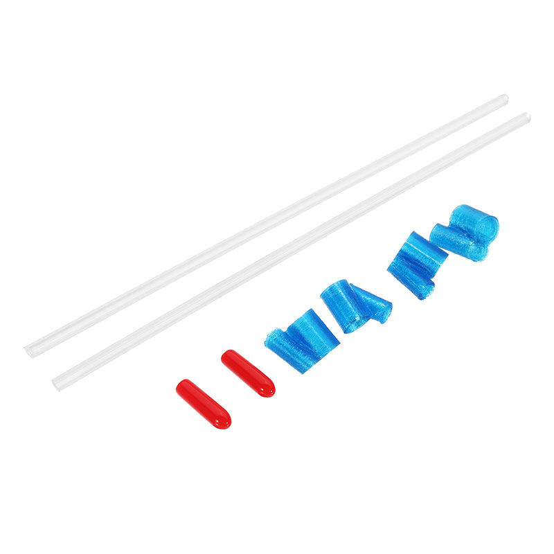 Comes with two 5.5" tubes and two black caps/ two red caps