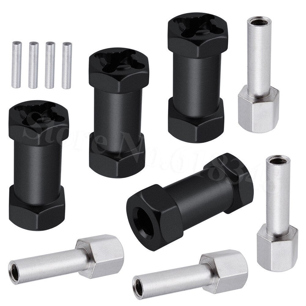 4pcs Aluminum RC Car 12mm Hex Wheel Hub Drive Adaptor 15/20/25mm Extension Combiner Coupler for 1/10 RC Crawler Axial SCX10 D90