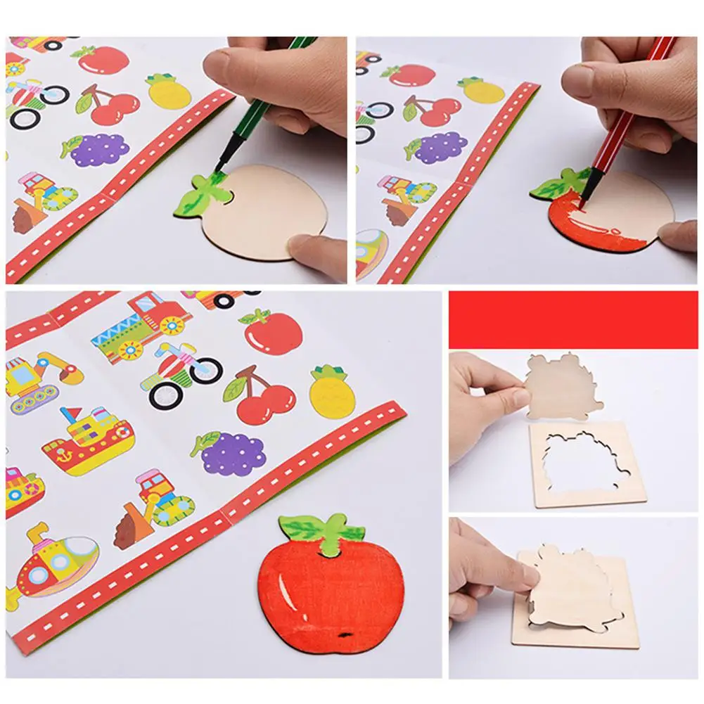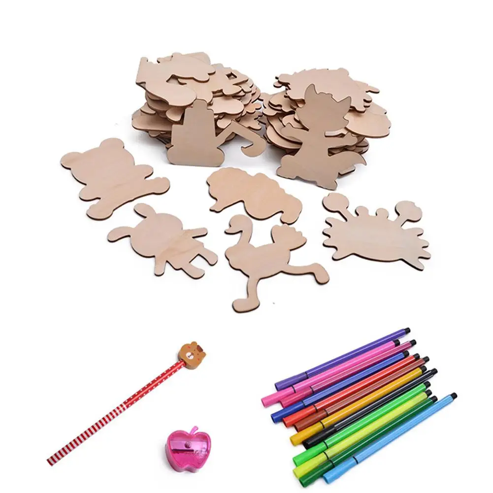 52pcs Wooden Painting Boards Children Kids Study Painting Tool Baby Graffiti Coloring Painted Template Pack Child Puzzle Toys