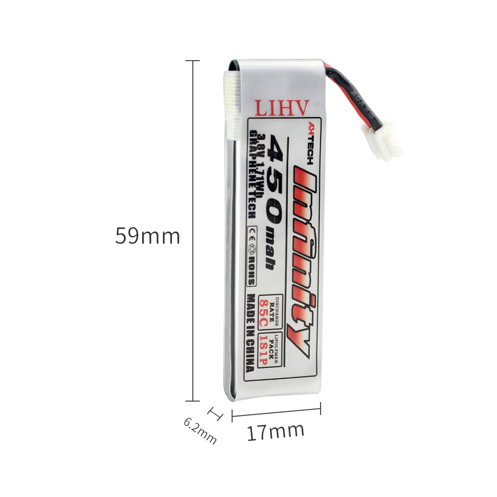 5PCS Infinity Lipo Battery 1S 3.7V 3.8V 450mAh 85C 1S Rechargeable FPV Battery with PH2.0 Plug for Indoor Racing Drone Toy