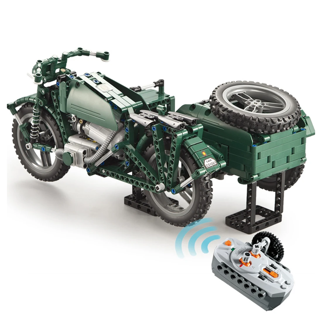 629Pcs 2.4G World War II Military Motorcycle Assembly Building Block Construction Kit for Children