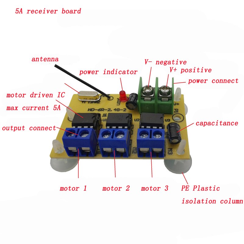 - 5A receiver board working input voltage:DC 6V-15V