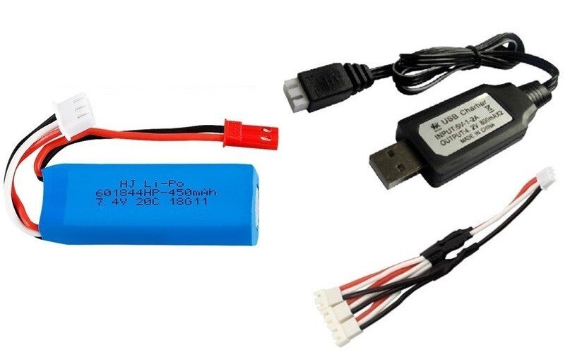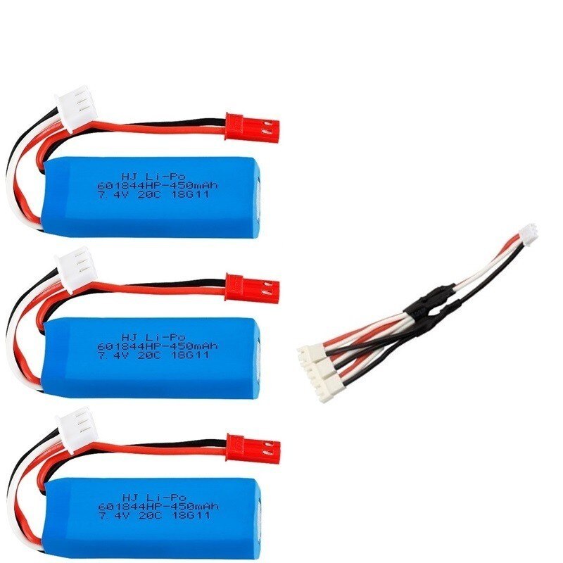 7.4V 450mAh Lipo Battery and USB Charger for WLtoys K969 K979 K989 K999 P929 P939 RC Car Parts 2s 7.4v Battery 3pcs