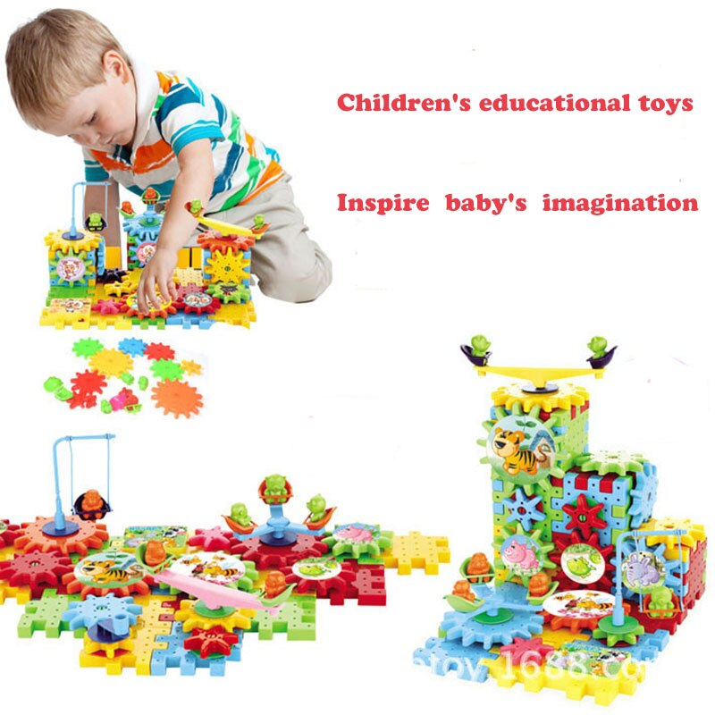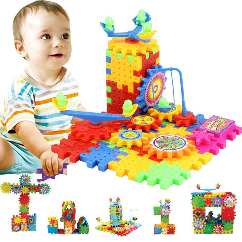 81Pcs Electric Gears 3D Building Blocks Kits DIY Free Assembly Educational Baby Plastic Gear Toys For Children's Birthday Gifts
