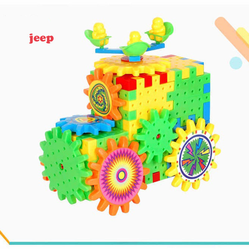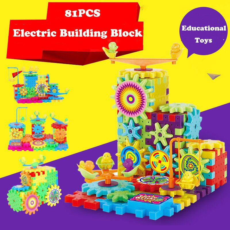 81Pcs Plastic Electric Gears 3D Building Blocks Kits DIY Free Assembly Educational Baby Gear Toys For Children's Birthday Gifts