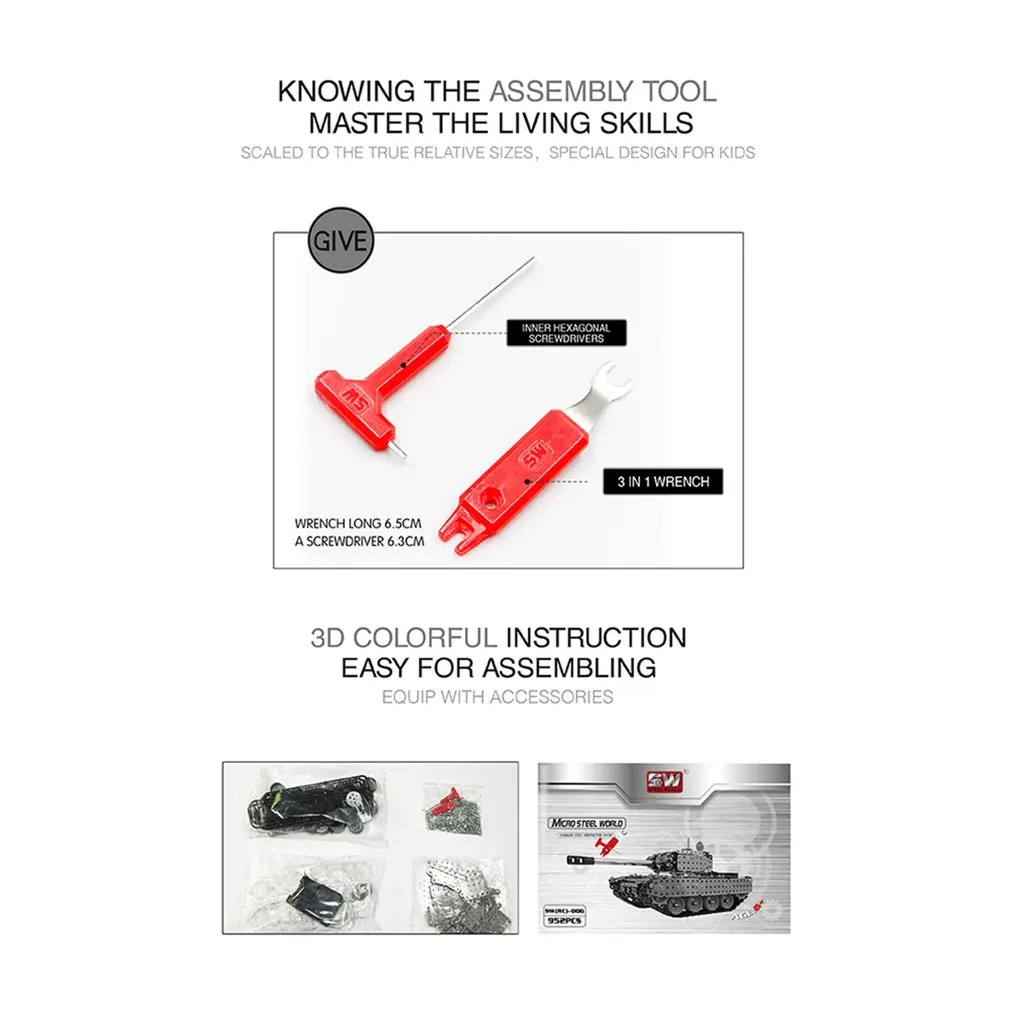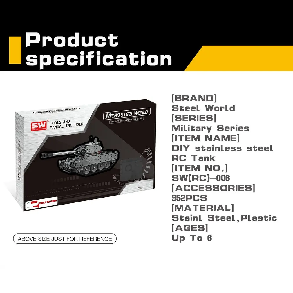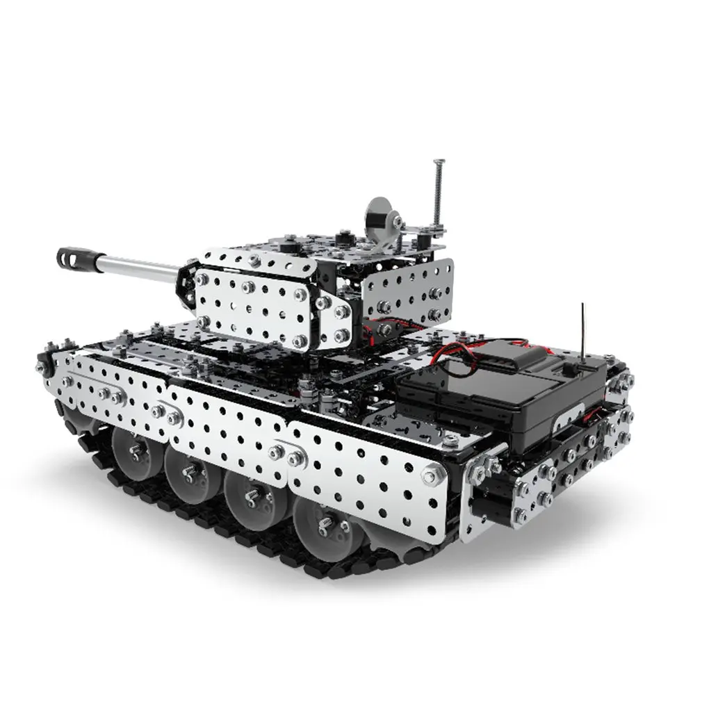 952PCS 2.4G RC Military Tank DIY Assembly set Stainless Steel Remote Control Model Toy Built-in 3.7V 300MAh lithium battery