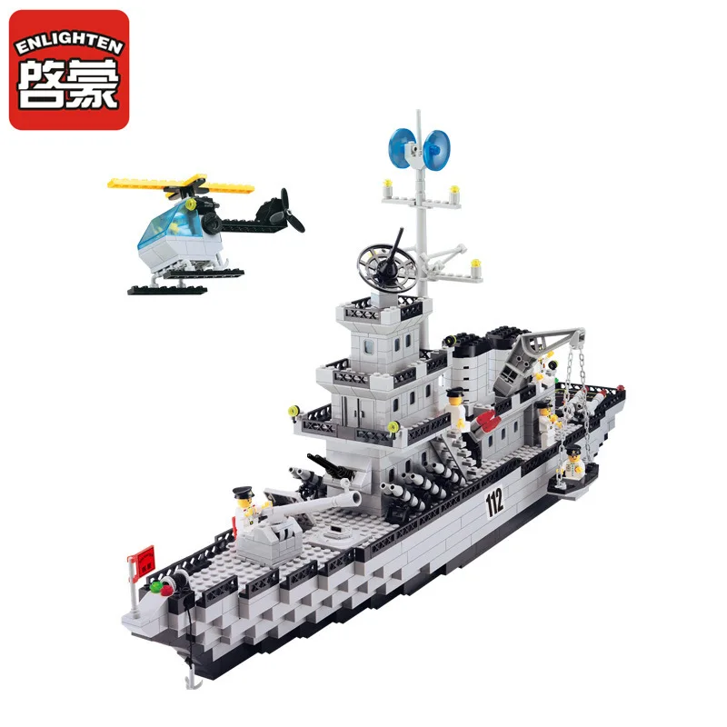 970pcs military army battle cruisers ship building blocks helicopter warship battleship enlighten Bricks Toys for children legoe