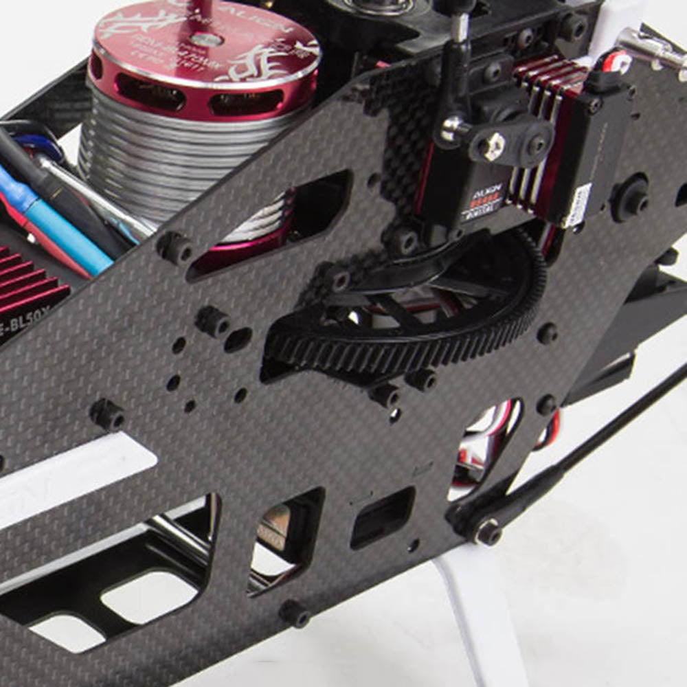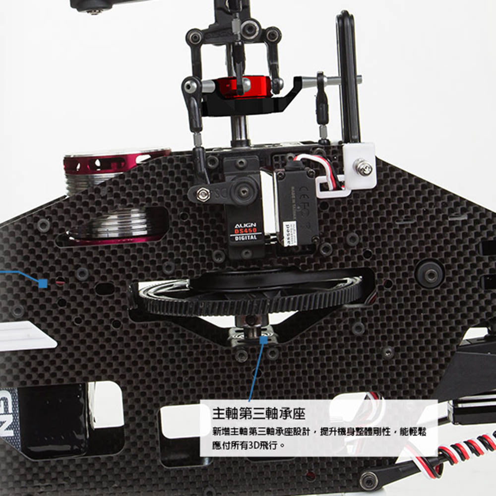 - Manufactured using the latest composite technology to embed brass inserts into main shaft bearing block, which enhance the structural integrity and strength. You can feel the solid structure even in extreme 3D flight.