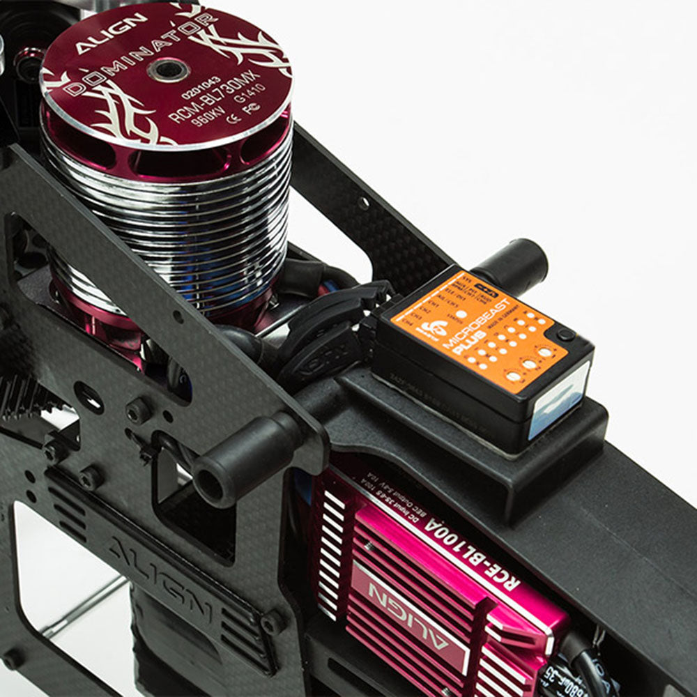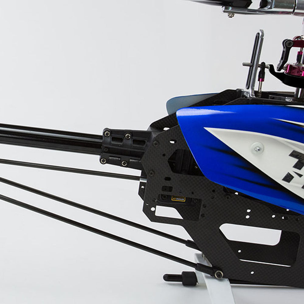 The newly designed dual point supported tail pitch assembly delivers slop free performance while improving rudder resolution and precision.