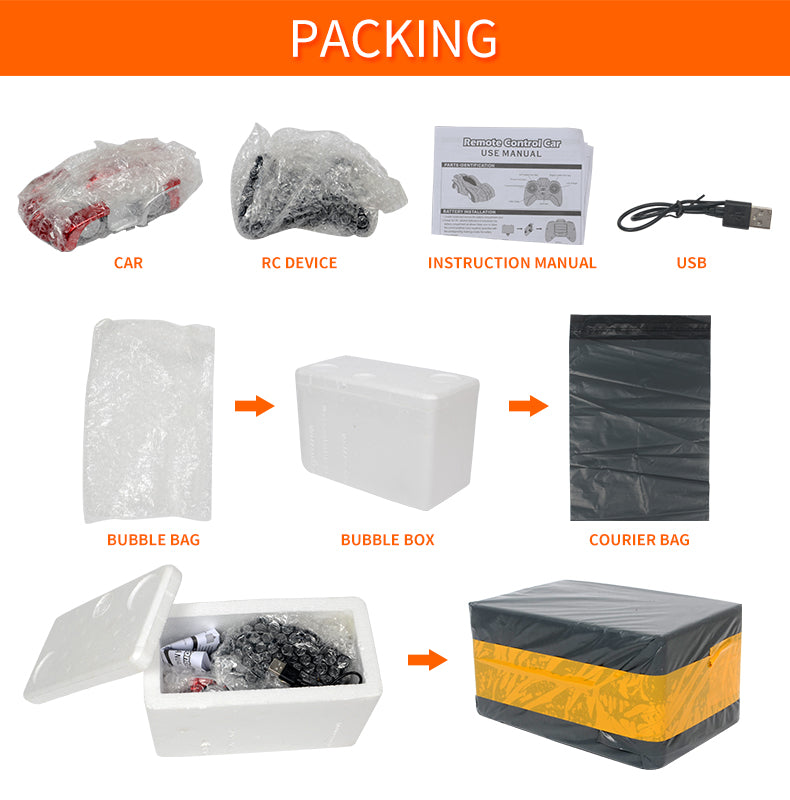 Comes with a infrared remote controller, you can control the running speeds and directions.
