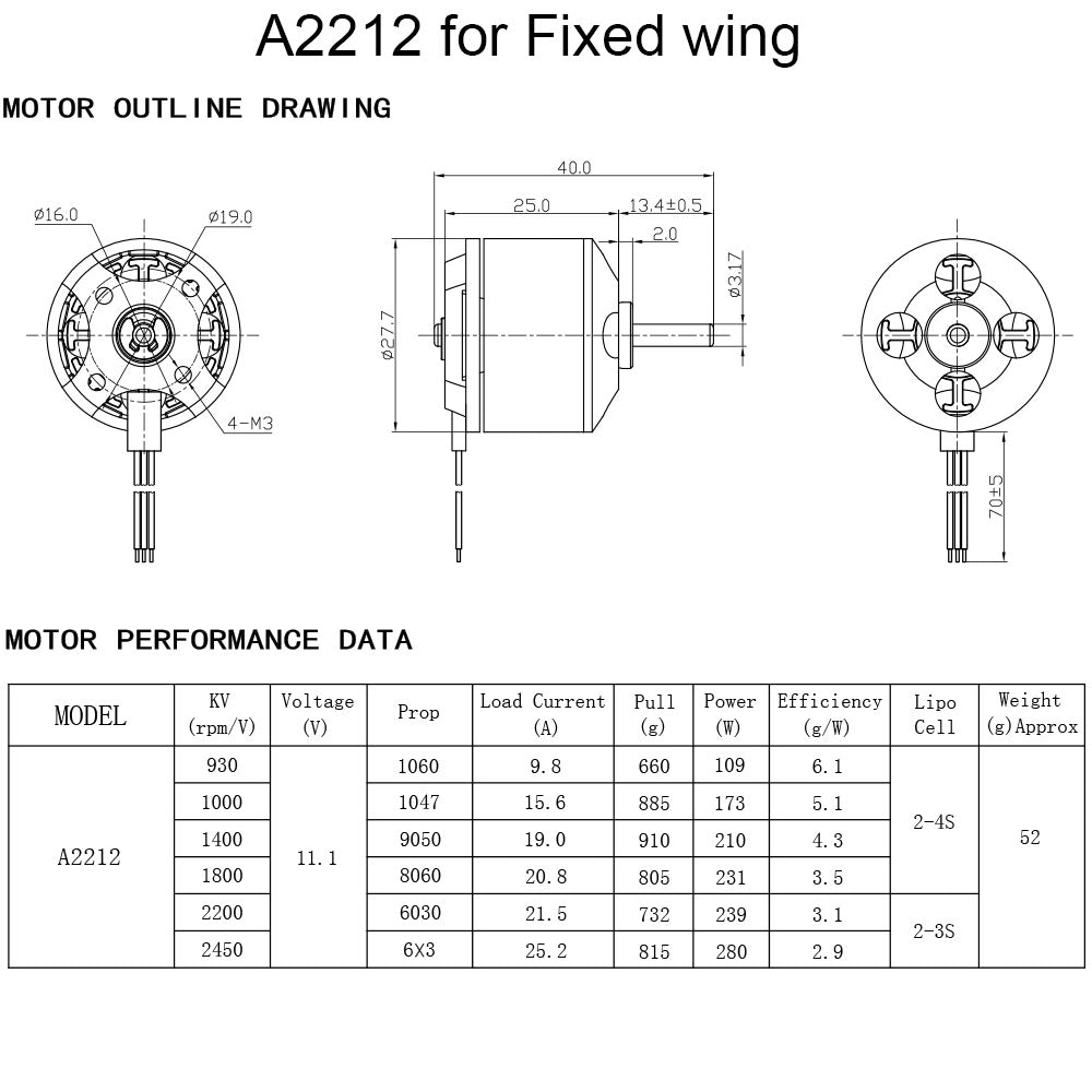 High performance motor for fixed wing,